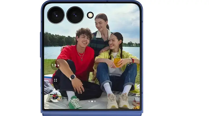 En comparación con los modelos anteriores del Galaxy Z Flip. Los resultados pueden variar según las condiciones de luminosidad o de disparo, incluidos varios sujetos, estar fuera de foco o sujetos en movimiento. La resolución de 50 MP solo está disponible en la cámara posterior ancha del Galaxy Z Flip7.